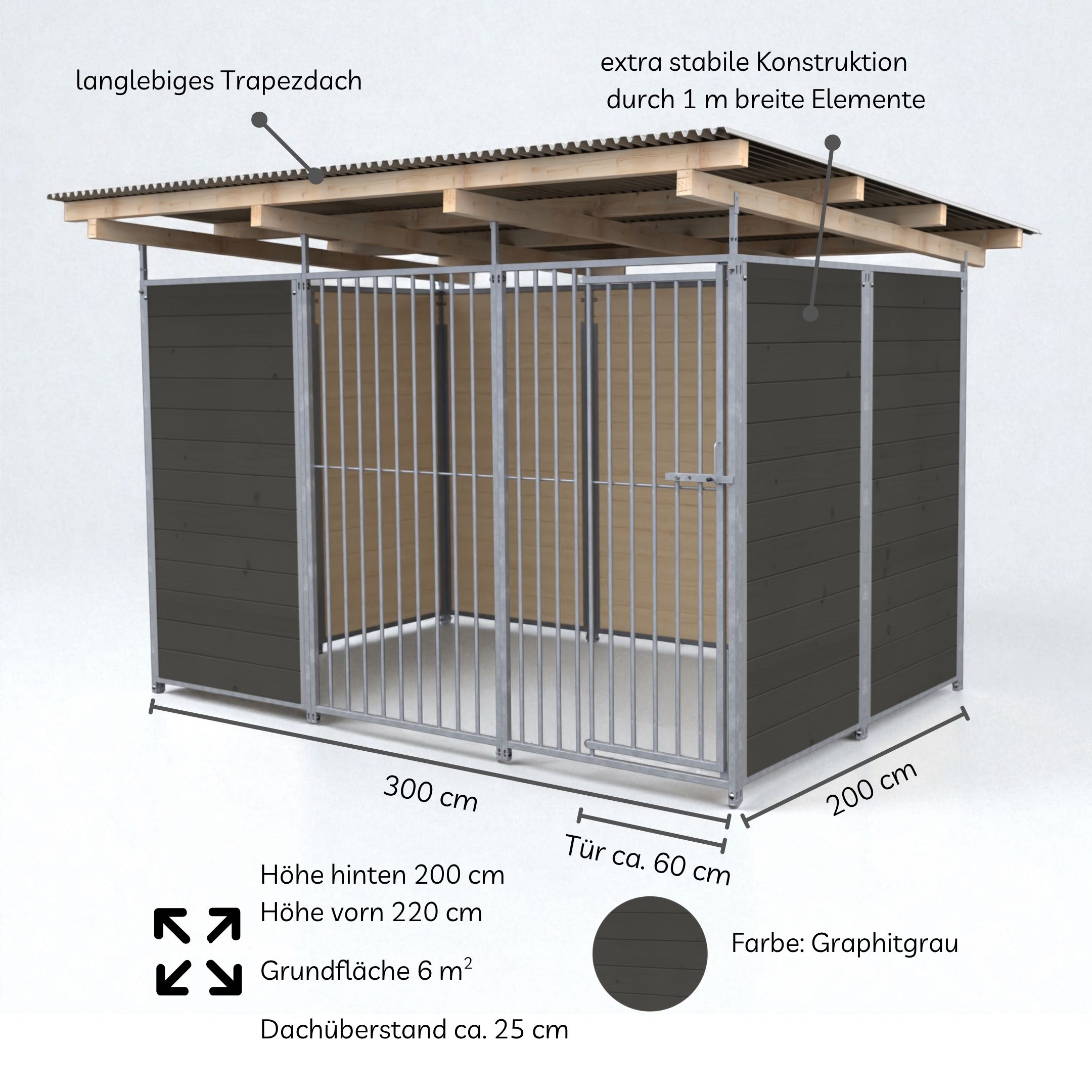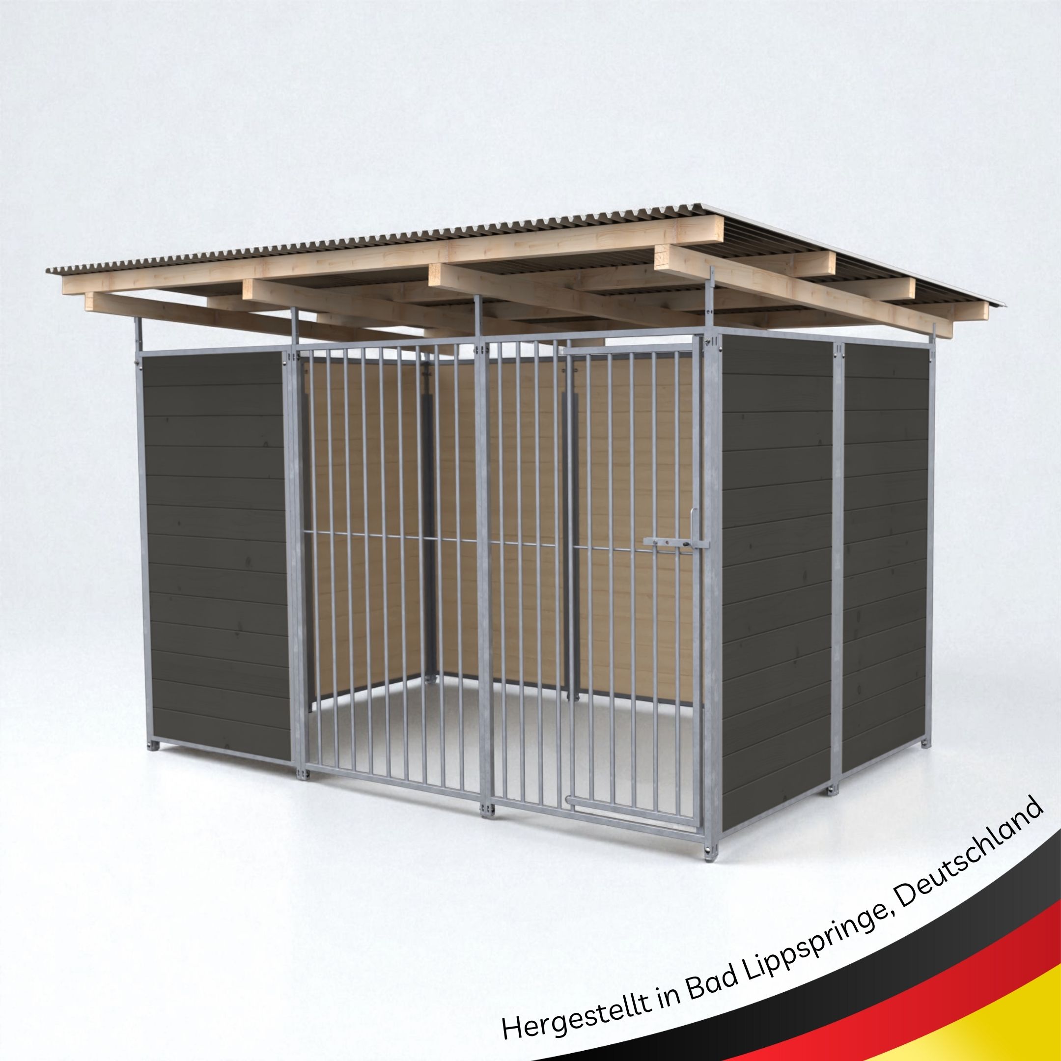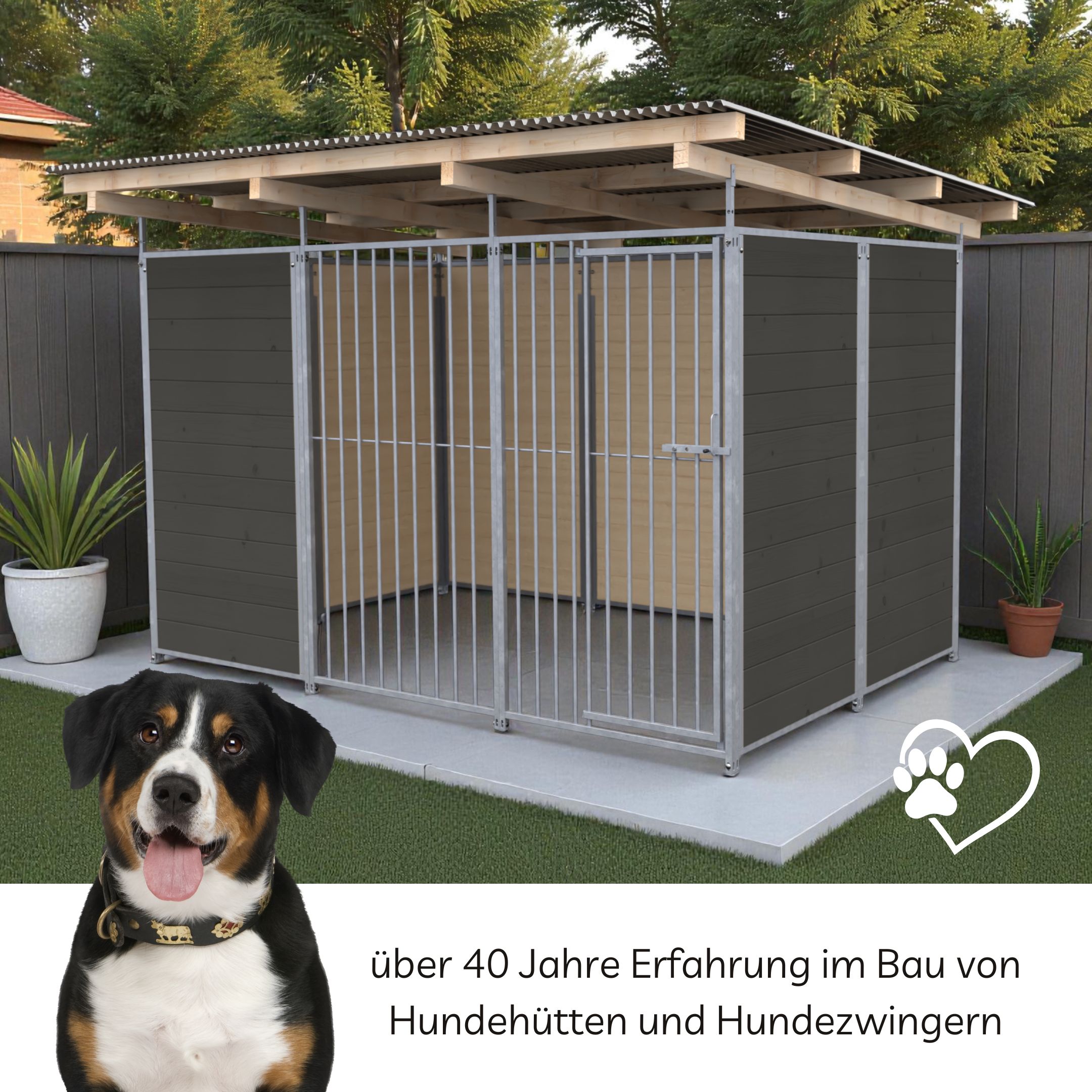SAUERLAND extra STABIL Hundezwinger 2 x 3 m | 3,5-seitig geschlossen | graphitgrau | Rohrstab Abstand 8 cm