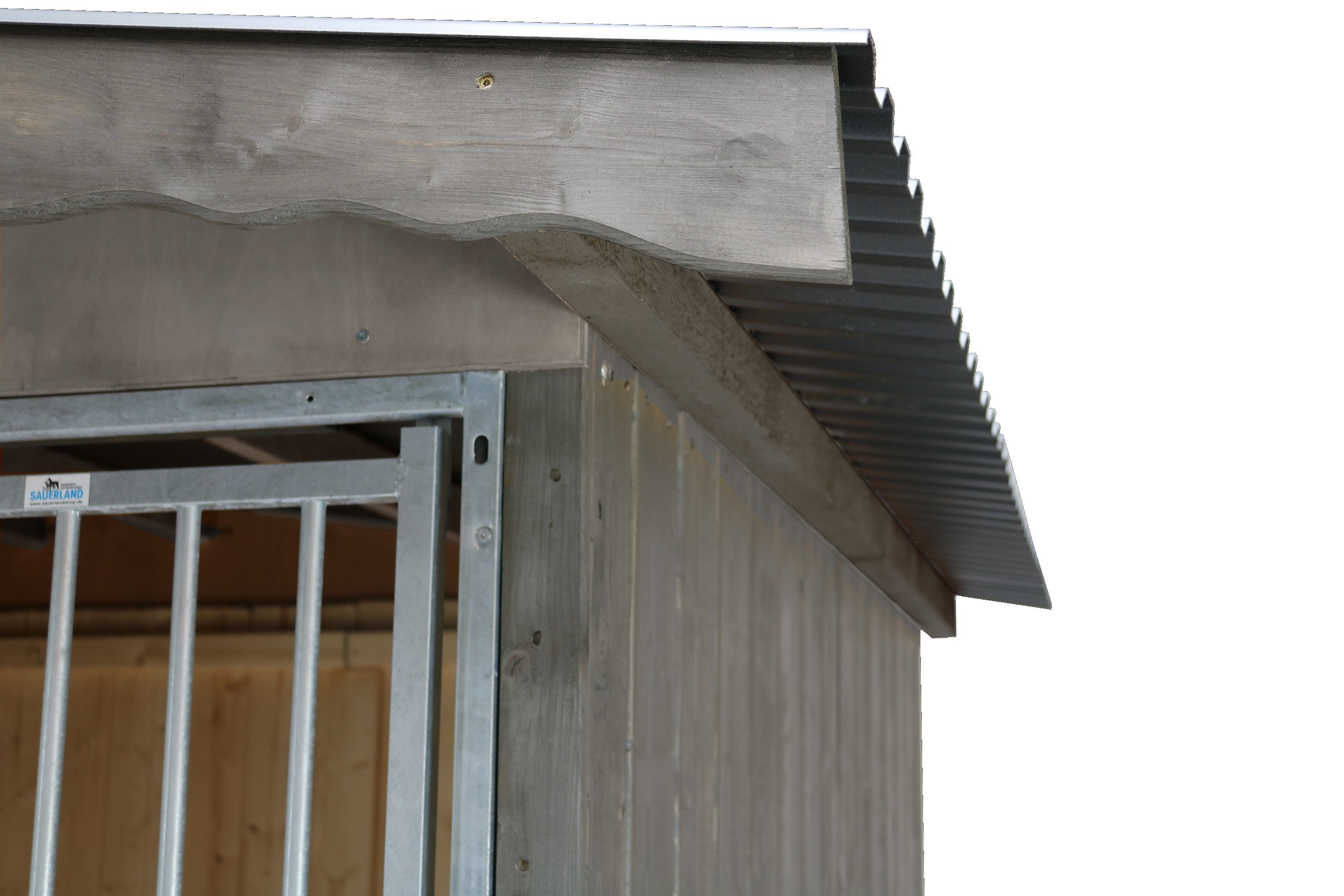 - bestehend aus 20 mm starken nordischen Nut- und Feder- Profilhölzern, Außenseite 2x Graphitgrau lasiert, Innenseite naturbelassen