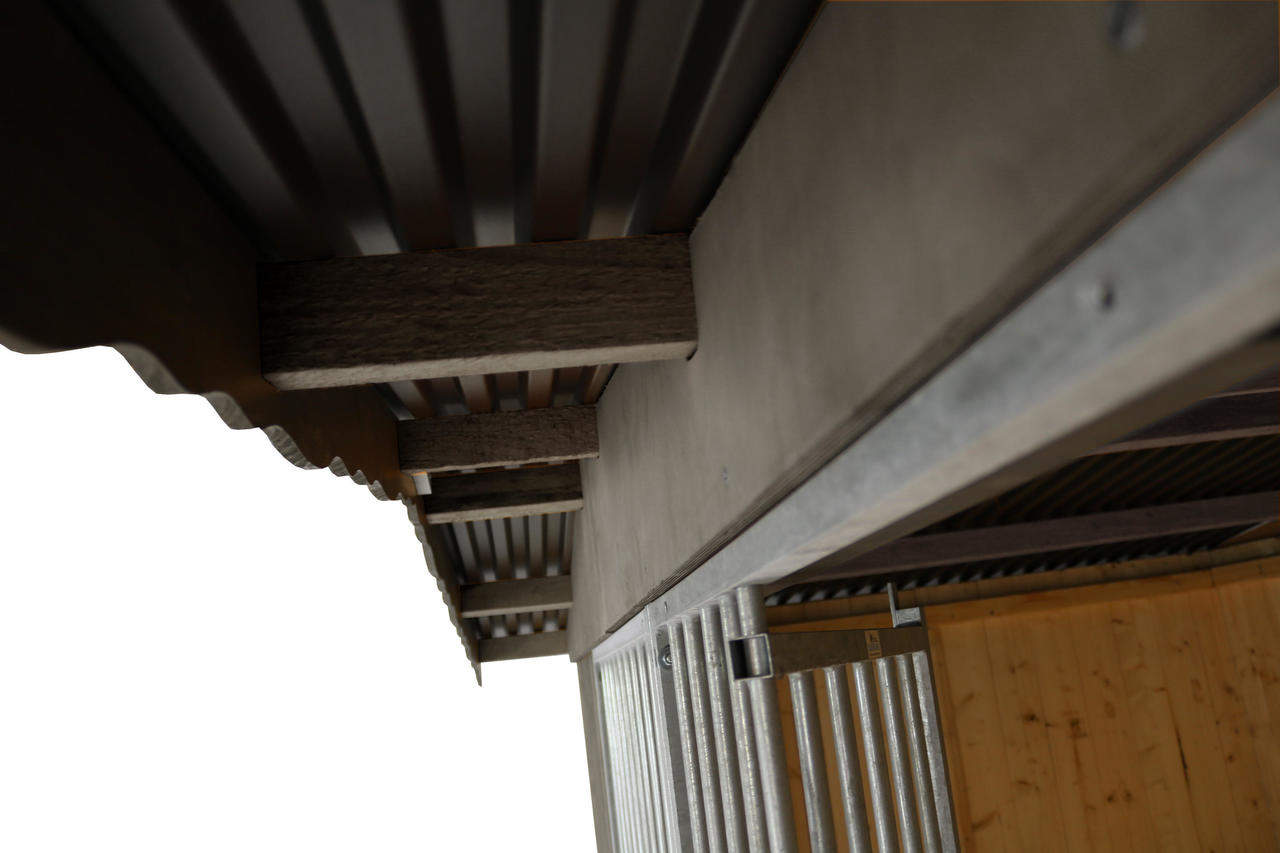 - bestehend aus 20 mm starken nordischen Nut- und Feder- Profilhölzern, Außenseite 2x Graphitgrau lasiert, Innenseite naturbelassen